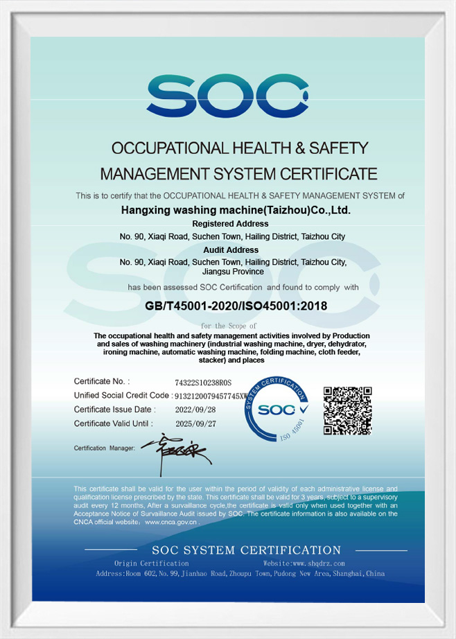 Certificat de système de gestion de la santé et de la sécurité au travail